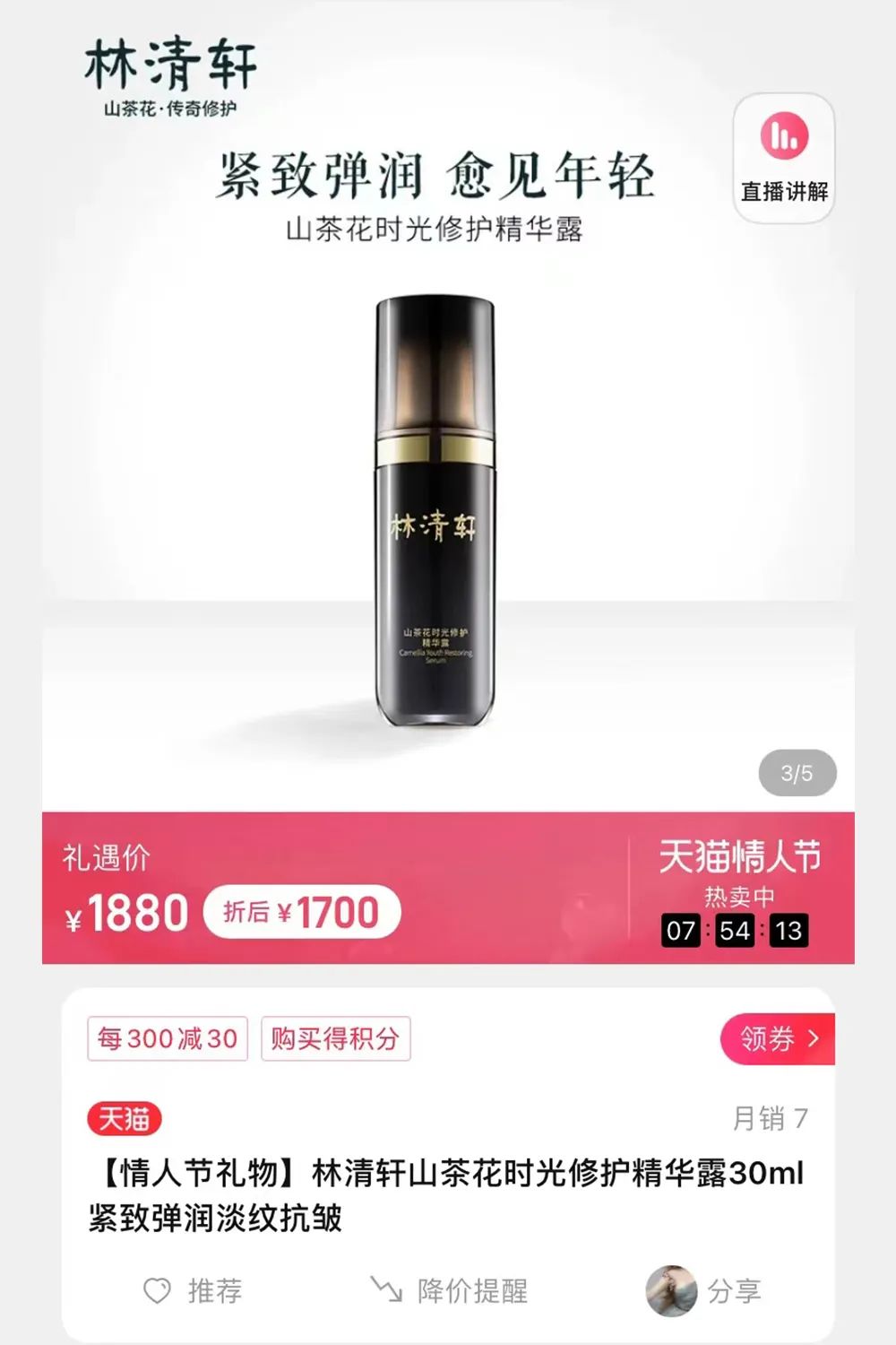 “林清轩坚持‘线上线下同款同价’的原则。直播间核心主推产品是全新一代的山茶花修护精华油,这款产品并不是核心主推品,没有过多推广,线上也从未做个促销折扣。目前情人节、女神节大促期间线上依旧是原价销售,也没在直播间做过打折促销,并不存在直播打折留出利润空间的说法。”