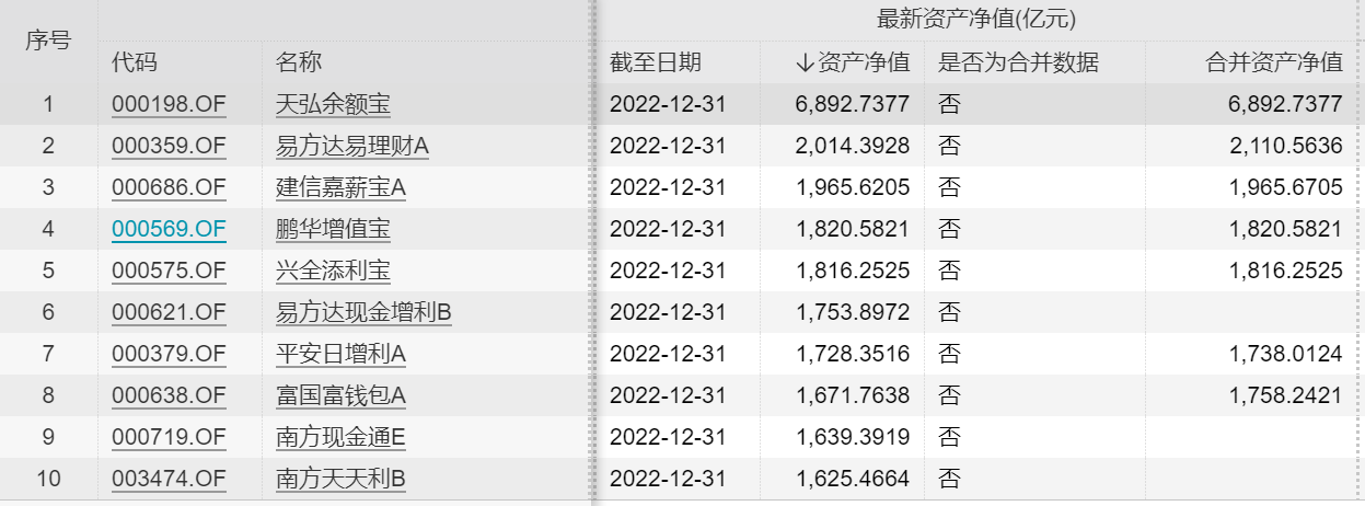按照单只资产净值的规模来看,前十只货币基金中,仅有天弘余额宝一只产品规模超5000亿元,为6892.74亿元;其次为易方达易理财,规模为2014.39亿元。
