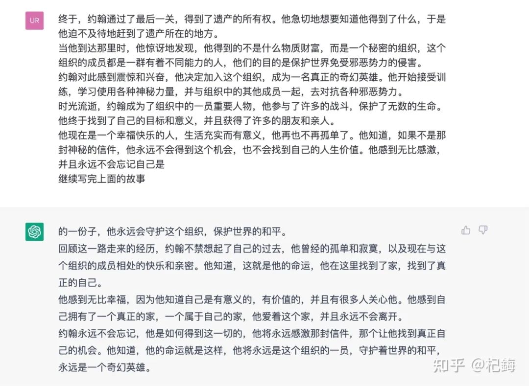 图片来自知乎,“杞鋂”用ChatGPT创作的故事