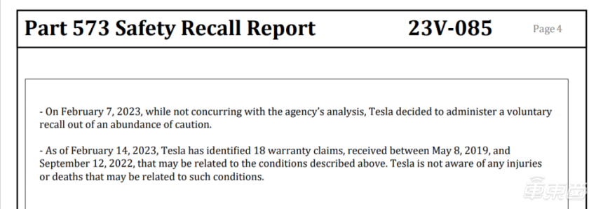 文件显示,从2019年5月到2022年9月,特斯拉确认了18起可能与此类问题有关的事故,不过目前,特斯拉不清楚是否存在相关伤亡。