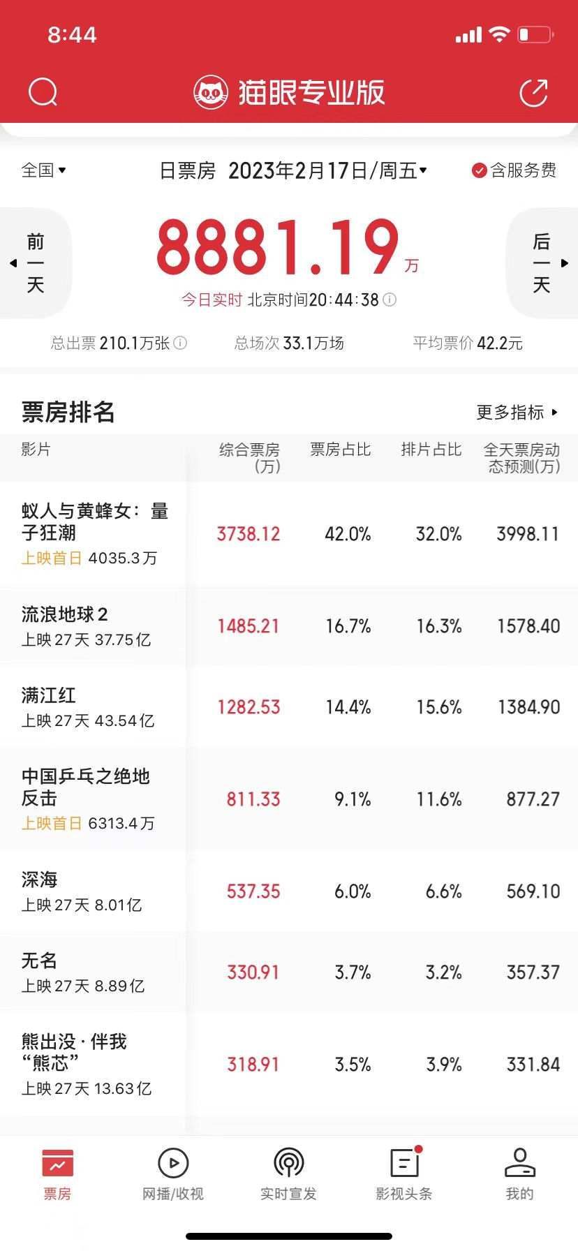 遗憾的是,“绝地反击”并没有到来。今日该片与漫威大片《蚁人3》同日上映,漫威经历过去三年多的沉寂,号召力已经下降许多,但仍然轻松击败了《中国乒乓》,以4000万的首日票房登顶今日票冠。截至发稿前,影片首日票房不足千万,甚至不敌已经上映27天的春节档老片《流浪地球》《满江红》,落到了第四的位置。