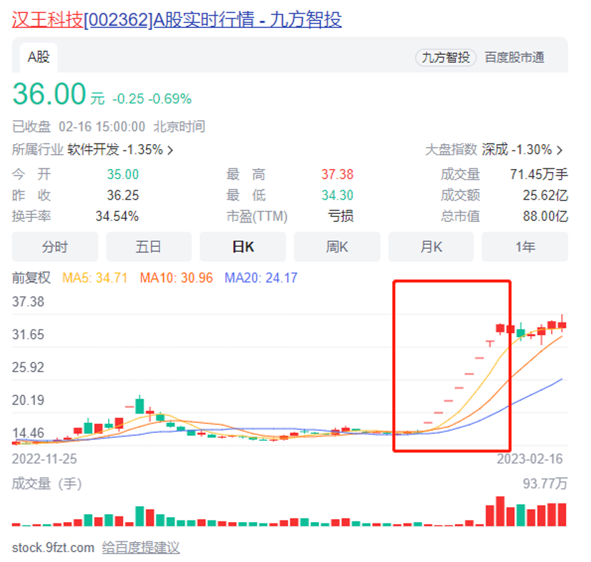 2月6日晚间,云从科技、海天瑞声、汉王科技等纷纷发布股票交易严重异常波动公告,称尚未与OpenAI开展合作,ChatGPT的产品和服务未给公司带来业务收入。以汉王科技为例,春节开市以来,受ChatGPT推波助澜,这家在2022年预亏损1.4亿的公司连续8天涨停,以至于深交所在2月7日向汉王科技发出关注函。但这不妨碍后一个交易日其股价继续飞升。