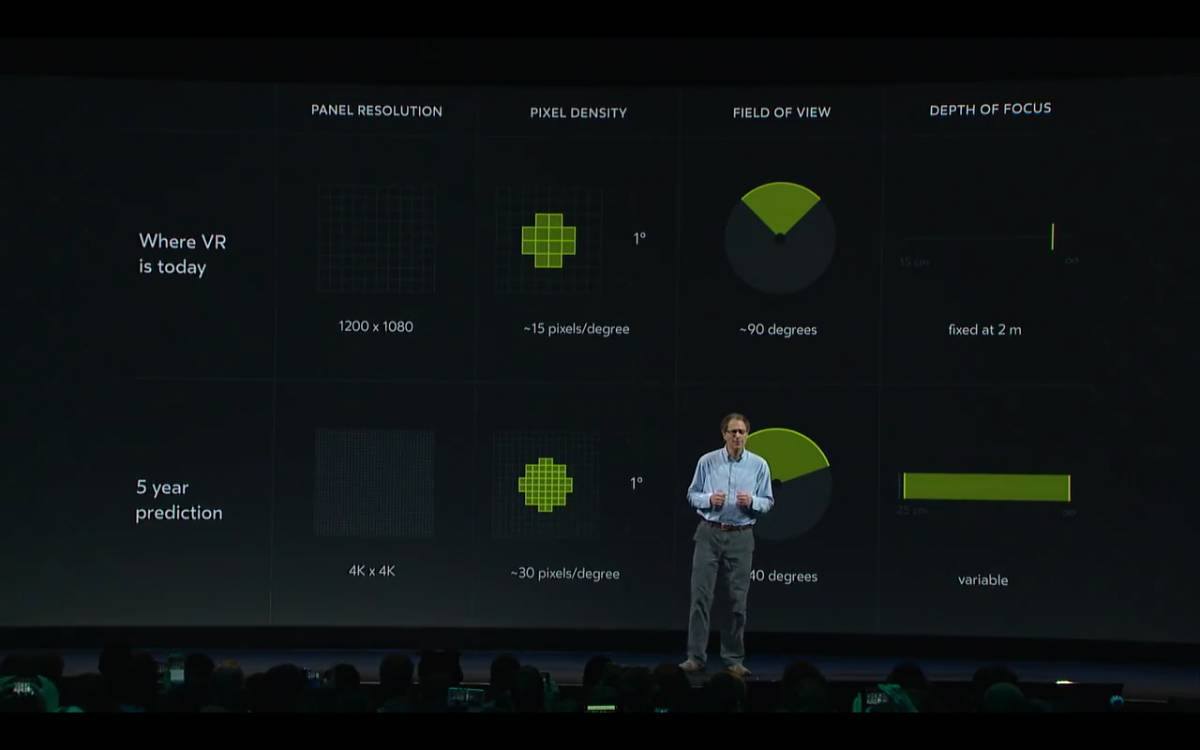 Oculus的首席科学家Michael Abrash展示了他眼中的未来VR图景,包括更高的分辨率,更宽广的视场角、支持多变的场景深度、眼球运动追踪技术以及更好地人体工学等。