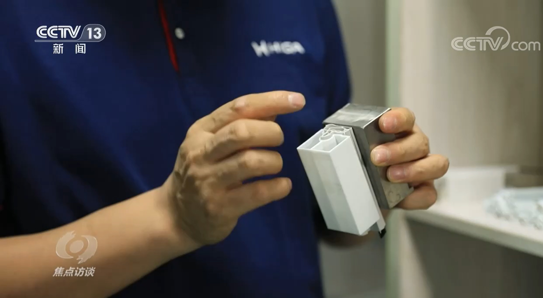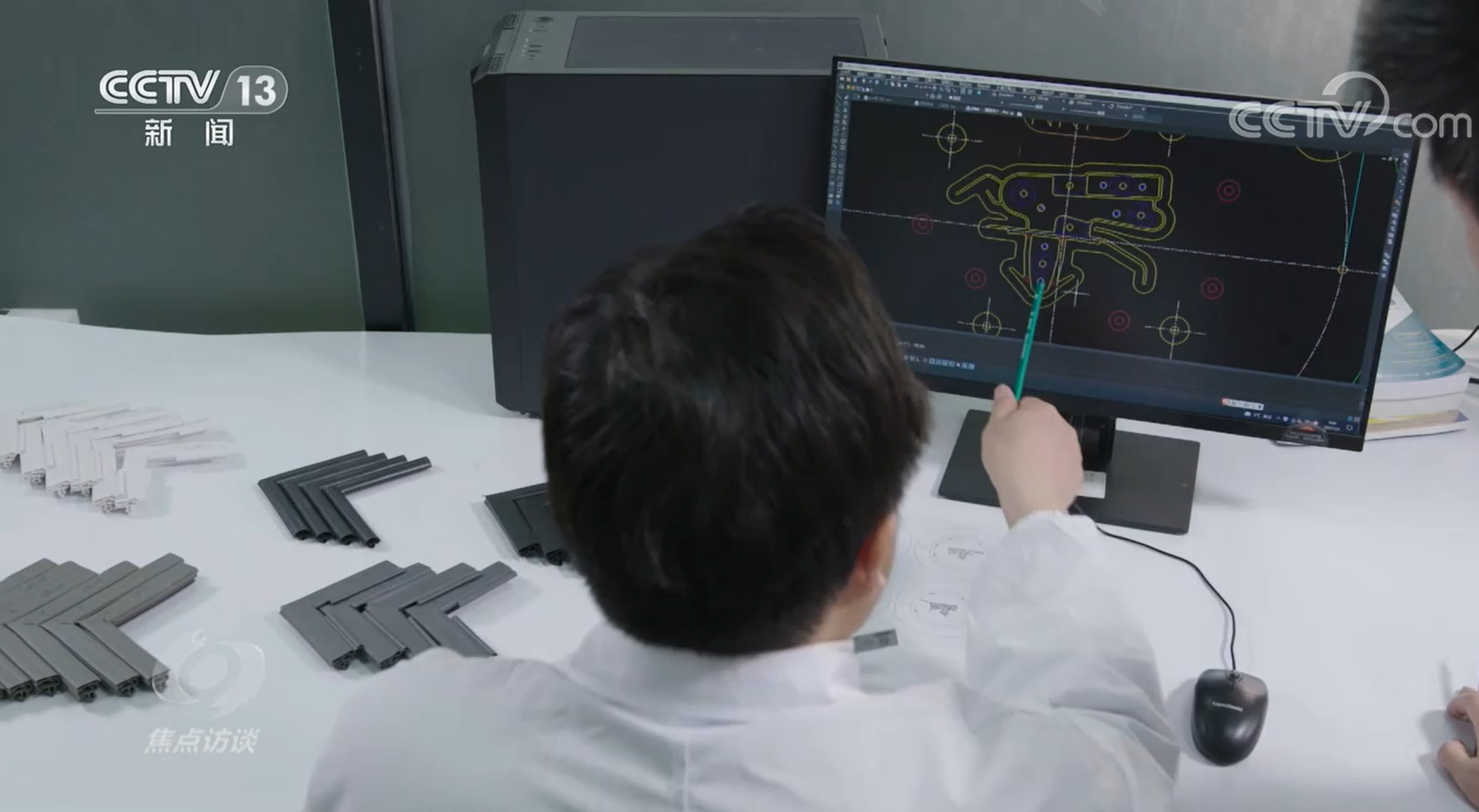 万朗磁塑门封研究所所长汪昌勇:“门封条的特点是多腔、异形,最薄的地方只有0.35毫米。TPE这个材质挤出的时候,温度比较高,从模具中取出来当时就裂了,焊不住。”