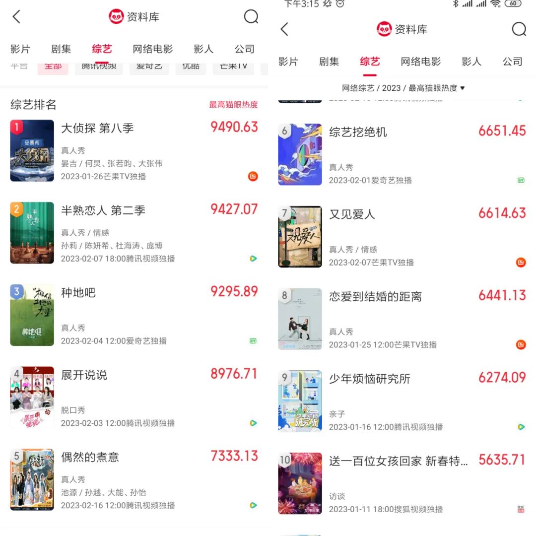 猫眼2023年网综热度总榜单Top10