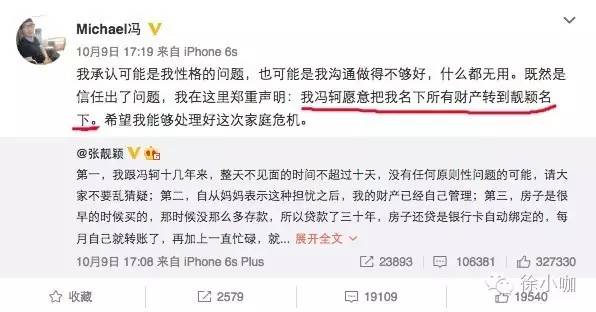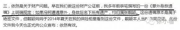 看来冯轲以上几点的回应,并没有什么“安全感”,他接着说到,愿意把名下所有的财产转到靓颖名下,当然这也没有法律效力。