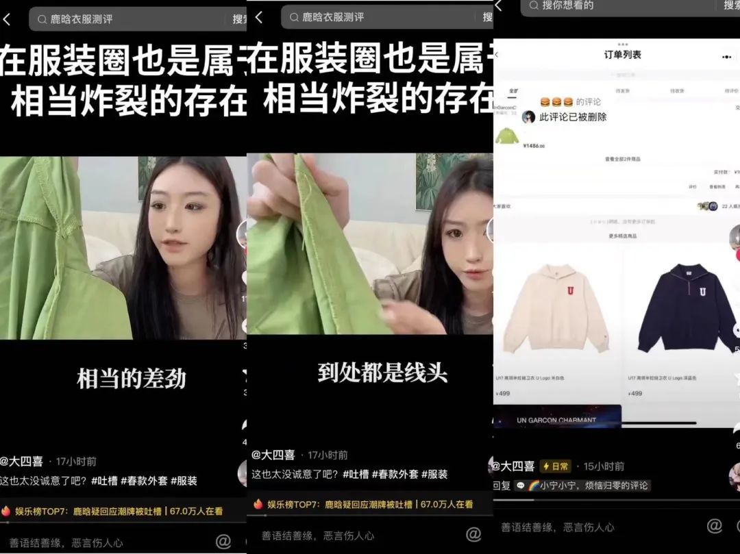 近期,抖音博主@大四喜在抖音发布一条测评视频,称花费近1500元买的一件鹿晗潮牌衣服,“到处都是线头,且塑料质感的拉链质量也不好,根本不是一个品牌服装该出货的质量。”