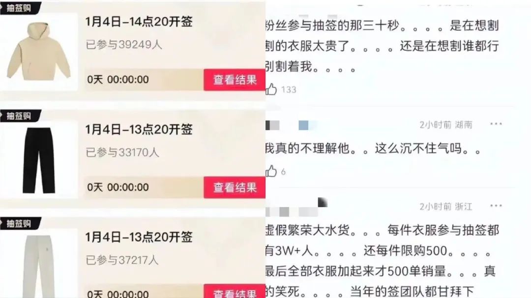 此外,王鹤棣的潮牌还引入了独特的抽签模式:只有中签才能获得购买资格。这也使得在小红书、闲鱼等第三方网络平台,出现了一些中签者高价转让衣服的情况。