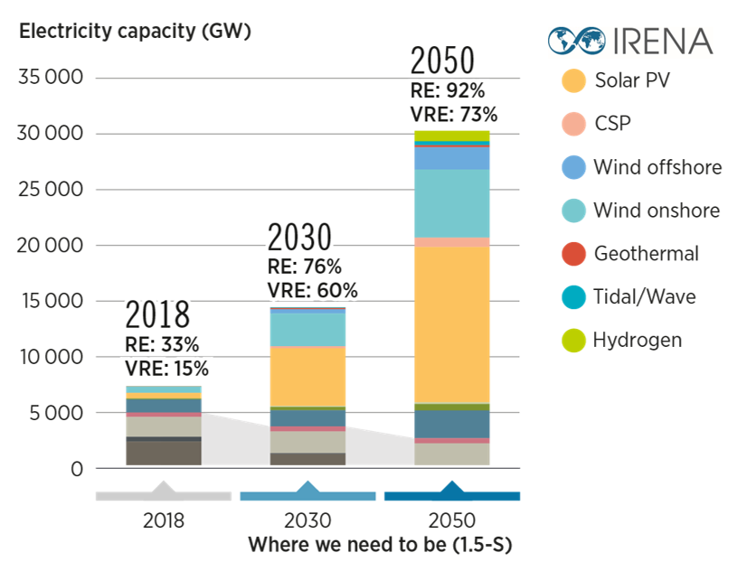 国际可再生能源署进一步指出,到本世纪中叶需要安装14TW的光伏系统(注意,仅仅是光伏),才有可能在本世纪将全球平均气温上升控制在1.5℃以内。