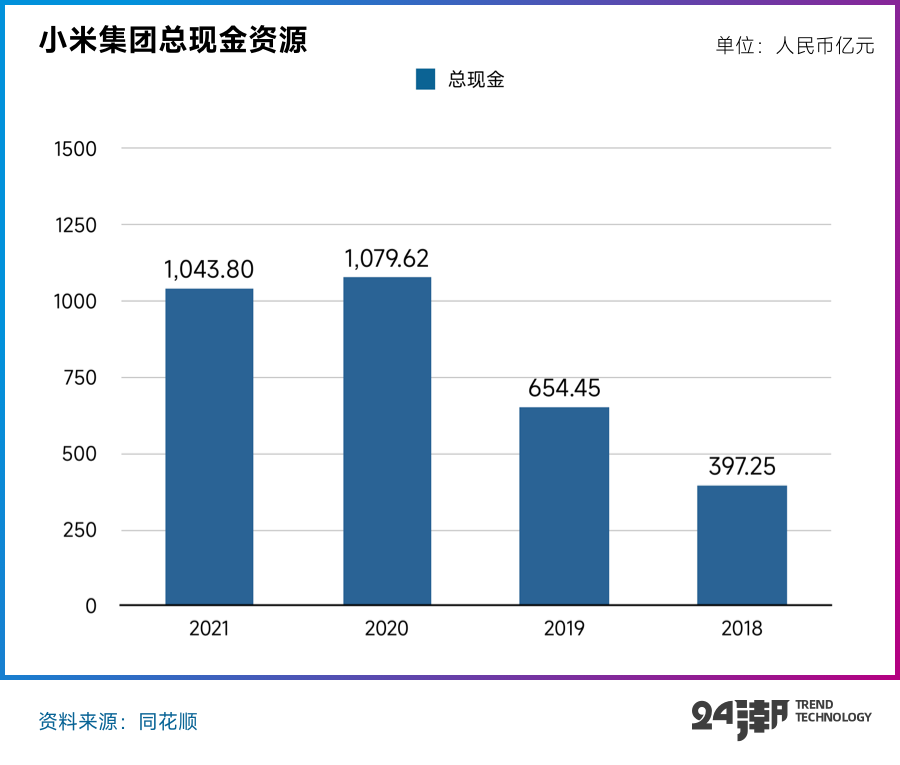 至于雷军所说的 “1080亿元现金”,则指的是现金总资源,包括在手现金、受限资金、定期存款、短期投资等等。