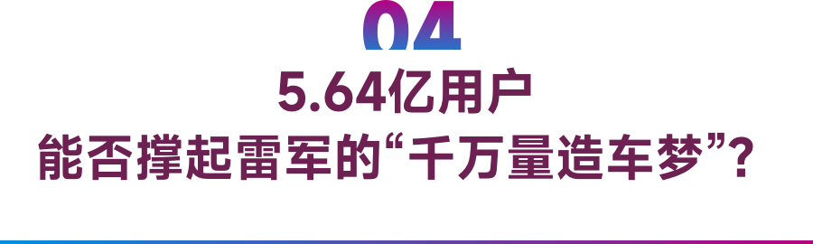 但需要指出的但是,更换频率较快的手机和高价低频更换的汽车,需求痛点有很大不同,追求极致性价比的 “米粉” 可能汽车购买群体的需求点不能重合,所以自称拥有的5.64亿月活用户,可能无法成为小米汽车的购买主力军。