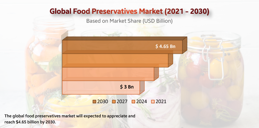 研究机构Strategic Market Research的数据指出,全球食品防腐剂市场将实现5%的复合年均增速,预计到 2030 年将增至 46.5 亿美元。