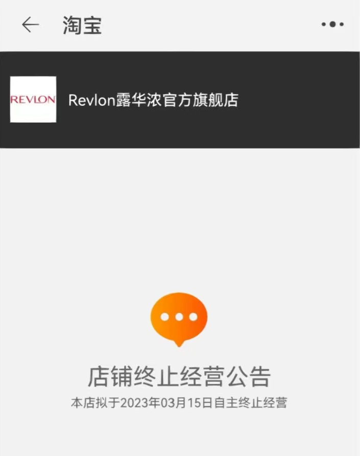近日,露华浓天猫店发布终止经营公告,拟于3月15日自主终止经营。
