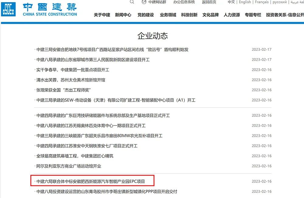 ▲中建官网的企业动态中依旧可查