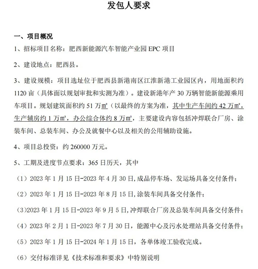 2023年1月15日至2023年9月5日,冲焊联合厂房及总装车间具备交付条件;