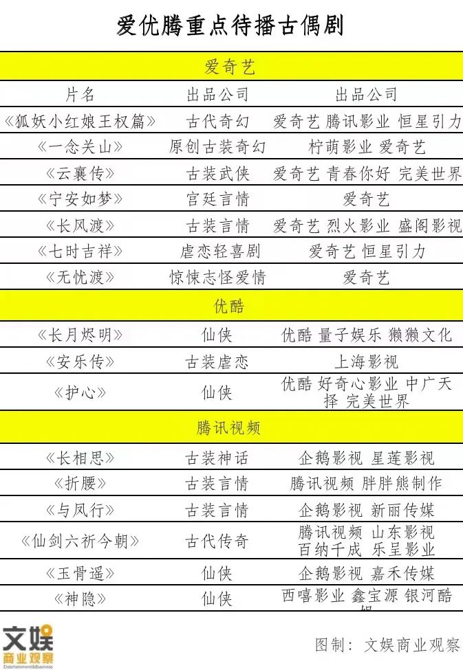 纵览爱优腾早前公布的2023待播片单,三家今年将会上线至少20多部古偶剧。