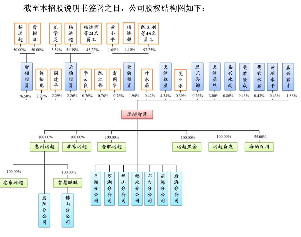 远超智慧产品包括软床、床垫、沙发等软体家具及配套家居产品,其成立于2016年12月,由曹树汉、杨远超和智领投资共同出资5000万元设立。