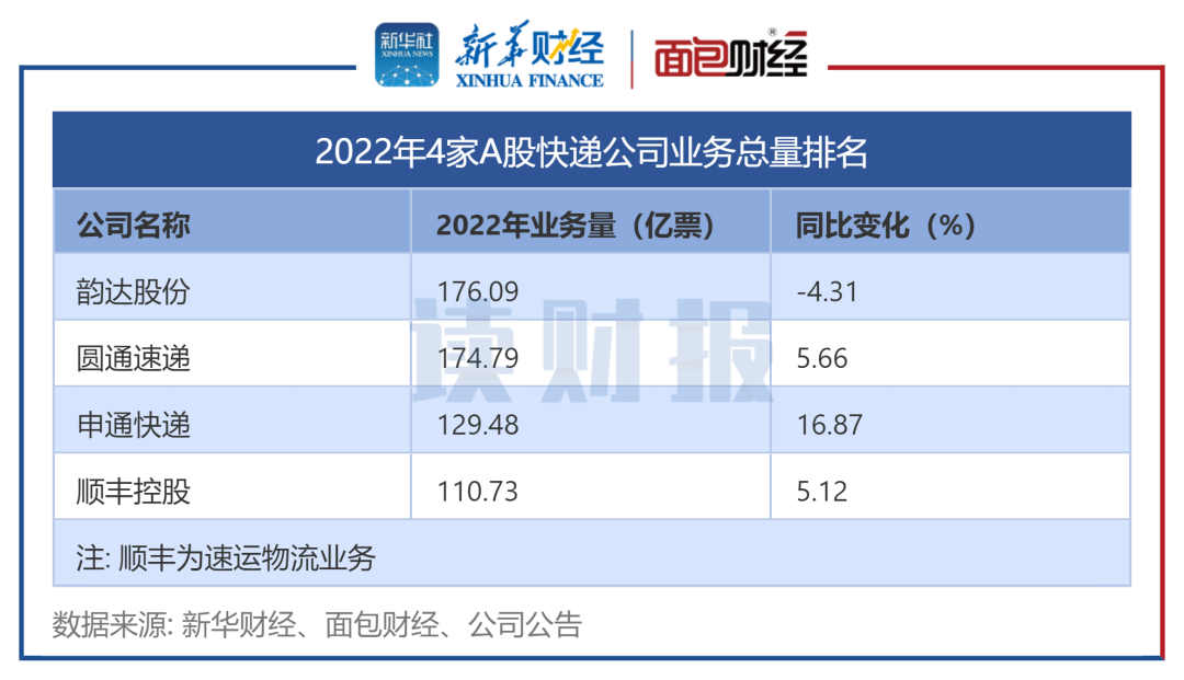 截至发稿时,共有4家A股上市快递公司披露2022年主要经营指标。