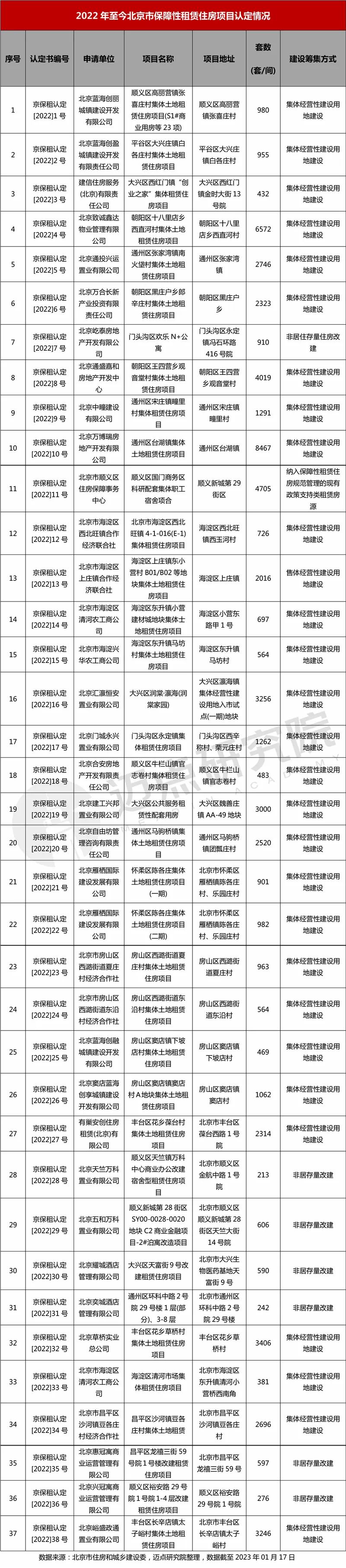 自2022年5月7日,北京市发布首批《关于保障性租赁住房项目认定情况的公示》以来,截止到2023年1月7日,北京已陆续公示了4批保障性租赁住房项目认定,共涉及了37个保障性租赁住房项目、67432套(间)房源,备受市场关注。