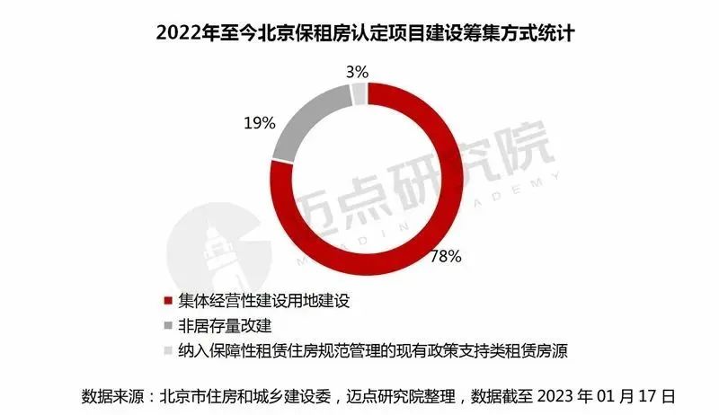 从建设筹集方式看,北京获得认定的保障性租赁住房项目以集体经营性建设用地建设为主要建设筹集方式,占比78%;其次是非居存量改建,占比19%。