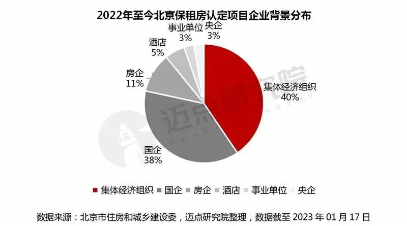 总体来看,北京市积极落实保障性租赁住房的建设。由于筹建的土地以集体经营性建设用地为主,以及国有企业具备土地资源优势和开发优势,所以集体经济组织和国企占据较大的比重。而非居存量住房改建项目主要由具备专业运营能力的万科、龙湖、城家等房企和酒店背景的公寓运营企业承建。不过,各建设主体专业水平参差不齐,建设管理运营能力有待进一步提高。