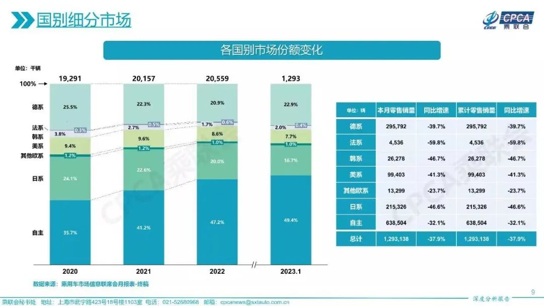 而据数据显示,1月,国内主流合资品牌乘用车市下滑最为明显。细分来看,德系、日系、美系等主流合资品牌乘用车的市场份额在1月份也均出现了不同程度的下滑。