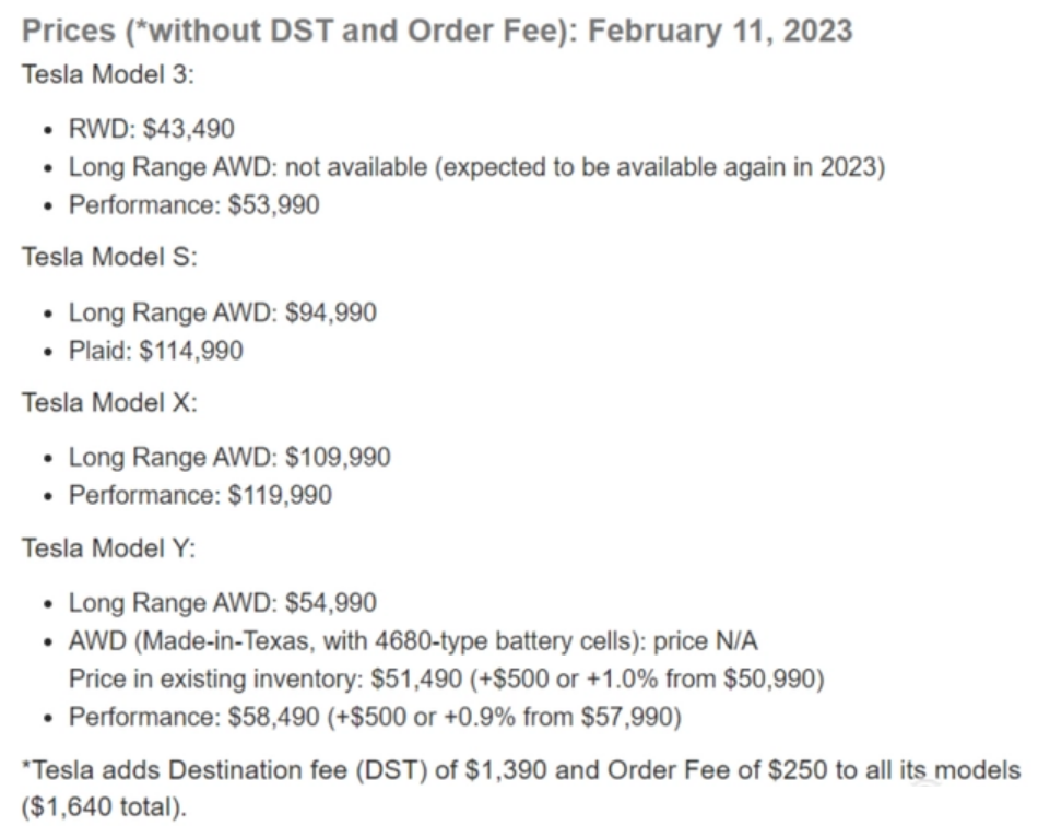 据外媒INSIDEEVs报道,特斯拉于美国时间2023年2月11日将Model Y车型起售价上调500美元(折合人民币约3415元)。此次价格上调是自1月12日大降价以来的第三次上调。
