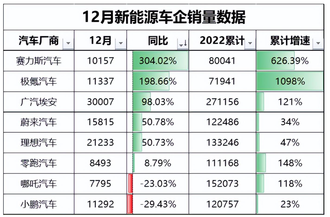 据新能源乘用车终端销售数据显示,极狐阿尔法S华为HI版车型2022年销售还不到270辆。事实上不止极狐,背靠华为、宁德时代和长安汽车,阿维塔11热度极高,但现实却太过打脸。中国乘用车联席会公布的销量数据显示,2022年8月正式上市的阿维塔11,12月销量仅为757辆。