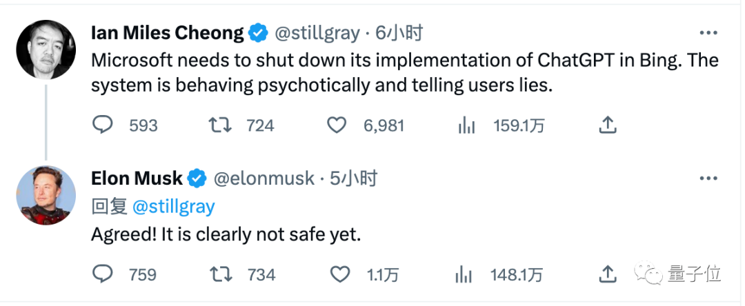 有业内人士在推特上表示,微软需要关闭必应中的类似ChatGPT功能,因为AI有时表现得像精神病一样。