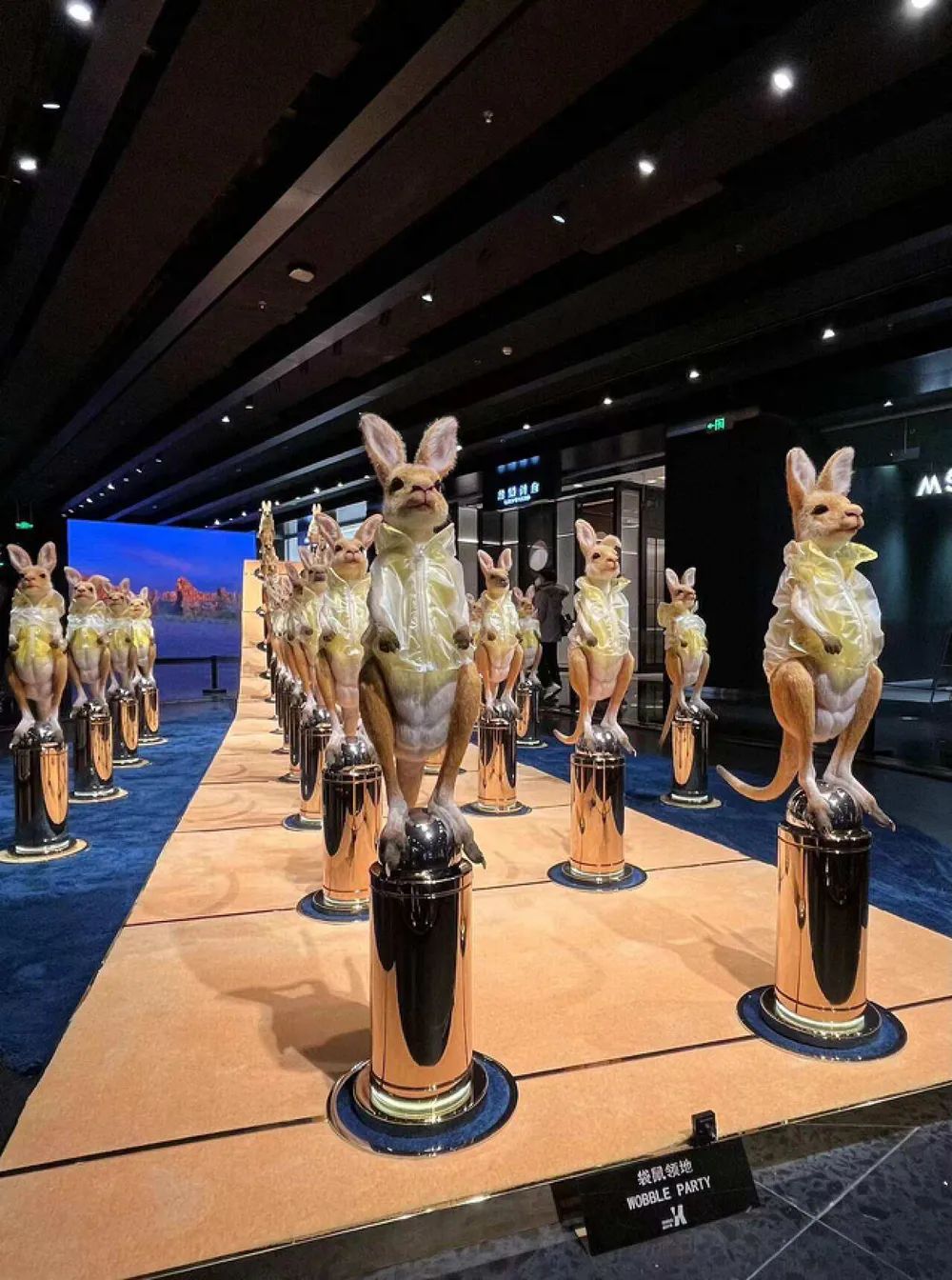 最出圈的就是袋鼠和兔子两处互动艺术装置,很容易联想到SKP-S的沉浸式火星体验里未来农场等设计。这之外,还有书店旁边的小型艺术空间,不定期举办展览。