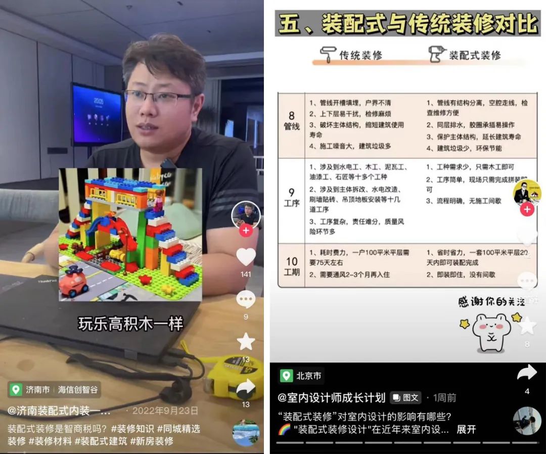 新零售商业评论发现,许多提供装配式内装服务的工厂都在抖音、快手等平台上打广告、做直播,通过建立私域,达到向线下引流的目的,竞争异常激烈,工厂之间非常“卷”。