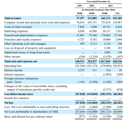 仅2022年第三季度的三个月期间,公司净亏损就高达1.95亿元,同比扩大72.57%。结合此前招股书披露的信息,入华3年,Tims中国共计亏损超11亿元,2022年前三季度亏损规模已是2021年全年的1.36倍。