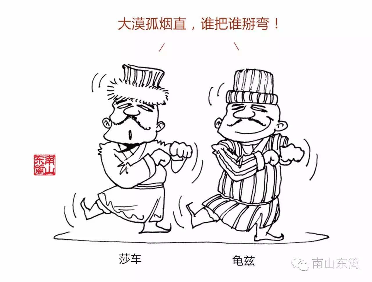 莎车北边傍着龟兹(qiū‘cí,中国古代西域大国之一),国王亲率五万人马来帮莎车茬架。