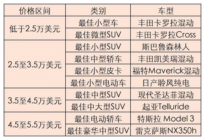 在CR的年度推荐车型方面,值得注意的是,混动在2023年CR推荐车型中占据一半名额,另有两款车型为纯电动车。这一结果,意味着即便在相对保守的美国市场,对车型驱动类型也开始逐渐向清洁能源转变。
