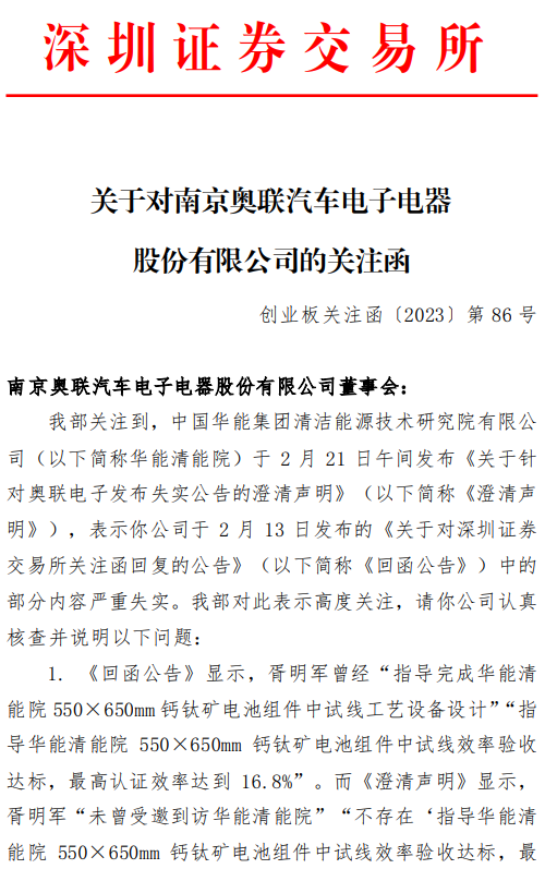 2月14日,赶碳号撰文《奥联电子请来了钙钛矿大神》,表达了对胥明军学历、专业、履历、能力、专利的格外关注。今天,赶碳号微信后台及官方客服私信收到大量留言。