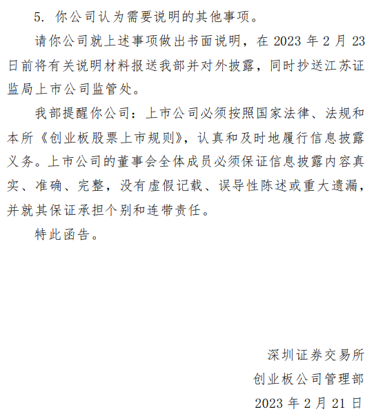 前述报道中的质疑或许已引起监管层的注意,关注函要求奥联电子必须在2月23日前回复、公告,并抄送江苏证监局上市公司监管处。