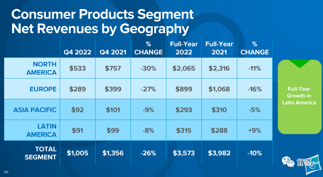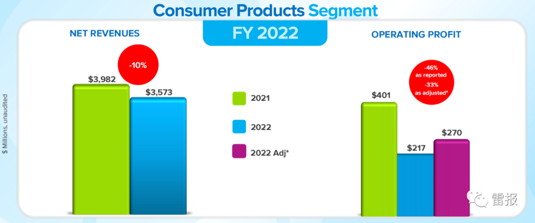 整体来看22年Q4和全年孩之宝的品牌组合业绩表现,可以说是“令人挠头”的——和消费品在各地区的收入表现一样“全线飘绿”,Q4最大下跌达到30%,全年则下跌了4%至17%不等。