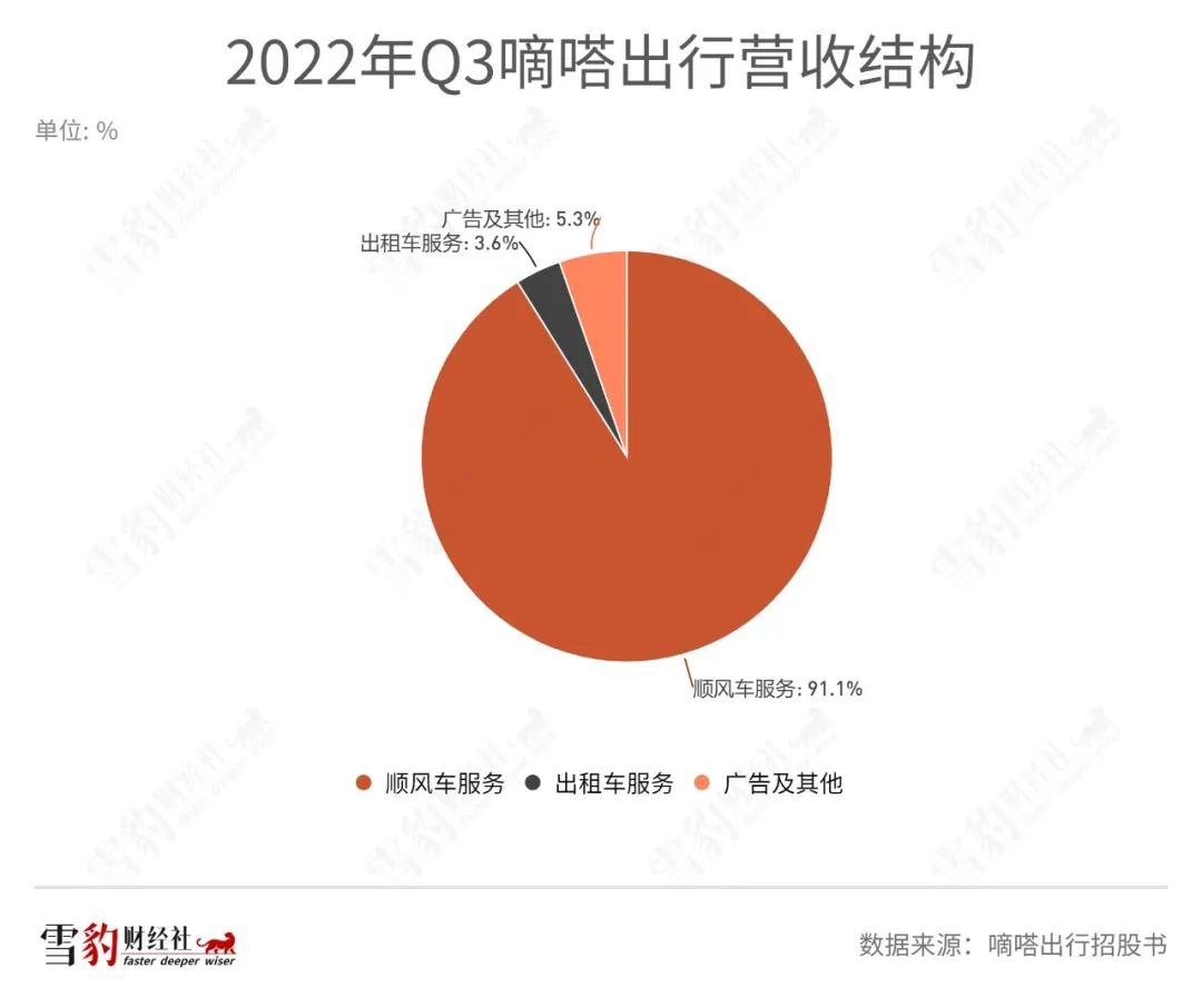 据最新招股书数据,2020年、2021年和2022年前三季度,嘀嗒出行的顺风车平台服务收入分别为6.72亿、6.95亿和5.23亿元,占总营收的比例分别为89.1%、89.0%、91.1%。