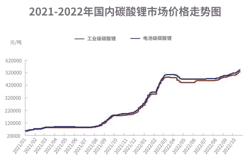 近两年,随着需求量的暴涨,锂价一路攀升。根据工产研锂电研究所(GGII)的数据,2022年中国锂电池出货655GWh,同比增长100%,电池级碳酸锂的均价约48万元/吨,最高时甚至一度达到60万元/吨。