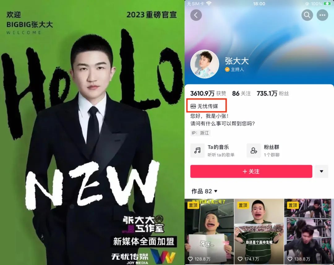 今年1月底,无忧传媒宣布张大大工作室加盟的消息,同时期,张大大在抖音开启了与网友的直播连麦。