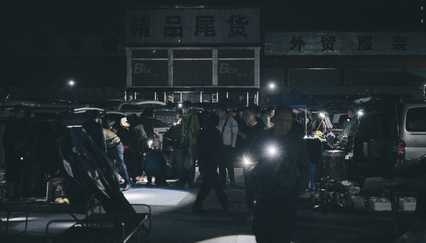 鬼市没有档口。院子空地上,小汽车和休旅车屁股冲外斜插着排成列,塞满货的后备箱盖儿大敞,摊主们在地上铺块布,卸货,就摆好摊了。一个摊接着一个,布满批发市场的宽阔大院,照摊位的灯在地面亮成昏昏的一片。买家们全部低着头,在只剩一米宽的狭窄通道间摩肩接踵,遇上入眼的就立刻蹲下挑拣。
