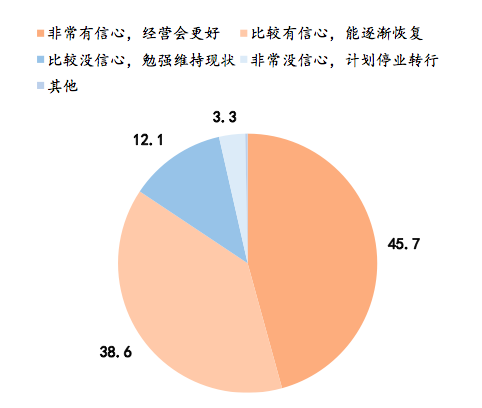 调查显示,对于2023年全年经营情况,84.3%的小微经营者表达出了不同程度的信心。其中,45.7%的小微经营者表示“非常有信心,经营会更好”,38.6%表示 “比较有信心,能逐渐恢复”,12.1%表示“勉强维持现状”,仅有3.3%表示“非常没信心,计划停业、转行”。
