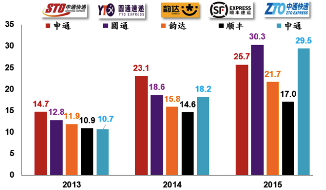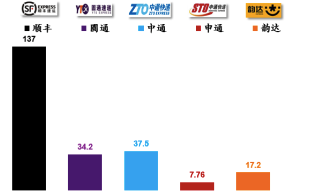 安信证券指出,对于传统快递业来说,“通达系”一直是重单量、轻业绩的逻辑,业务量是硬指标,因为通达系公司跑赢竞争对手很大程度需依靠规模优势下的成本下降来挤压竞争对手。