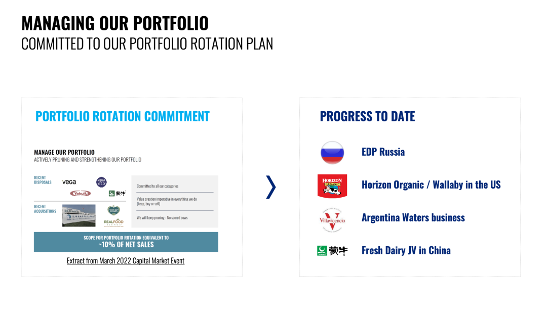 《费加罗报》指出,盛睿安几乎可以实现轮换10%投资组合的目标。但是他强调,这本身并不是目标,最重要的是使达能能够对其战略品牌进行再投资,并在中期做好准备,并表现得更加进取。“医学营养品、非处方药、食品补充剂......这个可能性的范围是巨大的,我们不禁止任何事情。”他说。