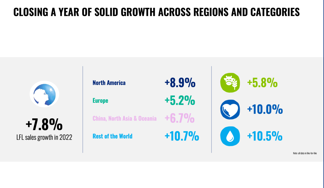 “很重要的一点是,2022年不仅是(推进)战略和转型的一年,也是(取得)有意义的进步和做出成绩的一年。我们以稳健的增长结束了这一年,所有地区和品类都做出了贡献。”自2021年9月起出任达能CEO的盛睿安(Antoine de Saint-Affrique)今天表示。