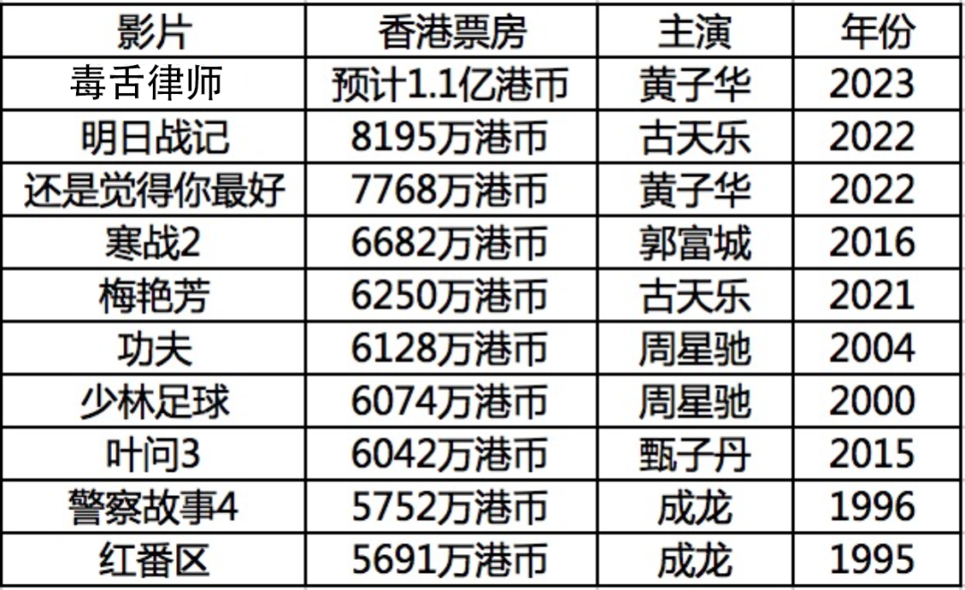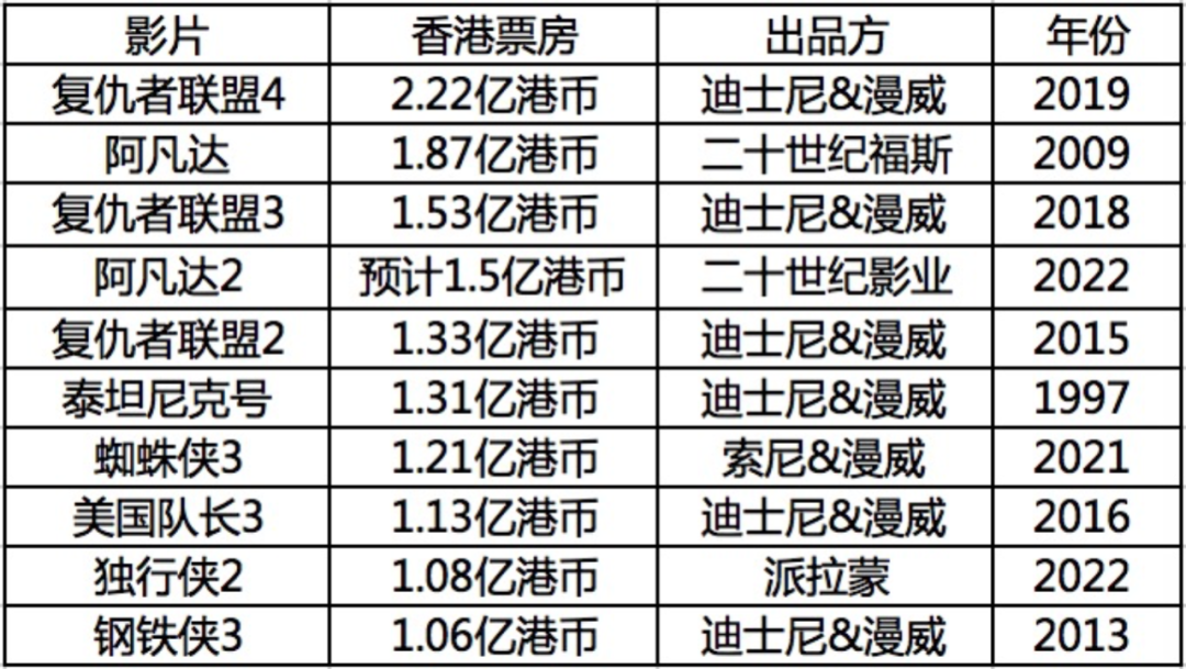 (香港市场历史票房TOP10)