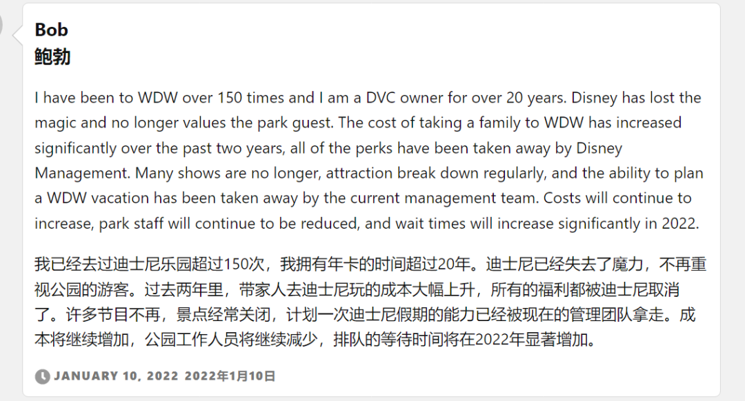 但“赚到钱”的另一面,是美国本土民众的强烈不满。有数据显示,在过去的50年里,迪士尼乐园的门票价格攀升了将近40倍;另外,美国本土迪士尼乐园的消费者中,有18%的人是借钱前往的。诚然,美国整体经济情况等客观原因对此有更大影响;但查佩克的措施,也确实或多或少地加重了美国民众享受迪士尼的快乐时的经济负担。同时,也有许多消费者认为,在收费项目激增、物价大幅度上涨的同时,迪士尼的服务质量并没有同步上涨。