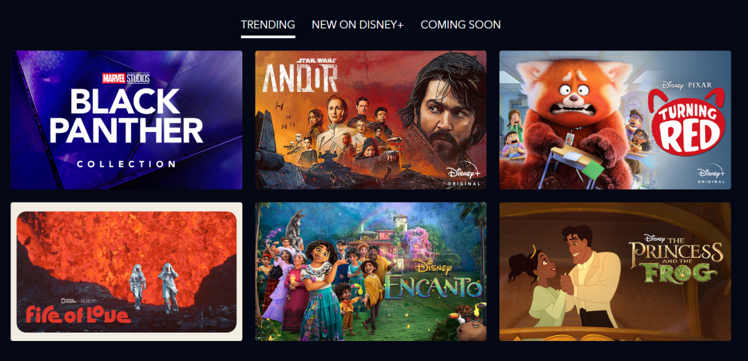 流媒体在查佩克继任CEO之前就已经是迪士尼的“重点领域”。2019年,伊格尔主导建立了迪士尼三大流媒体平台(Disney+、Hulu、ESPN)中最为核心的Disney+:这是一个覆盖全年龄受众的“合家欢”式流媒体平台,包括迪士尼、皮克斯、漫威等多个品牌的旗下作品,也是迪士尼自己的原创作品的主要输出阵地。其国内平台面向美国及加拿大开放,国际平台面向拉丁美洲及个别其他国家开放,另有Hotstar面向以印度为主的东南亚国家开放。