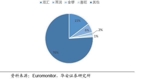 对于新入局者来说,低温肉制品的机会潜力更大。中国的低温肉制品市场是一个集中度较低的市场。据Euromonitor统计,我国低温肉制品市场的CR4仅为25%左右,其中双汇占比15%,雨润占比6%,后来者想要“居上”并非没有可能。
