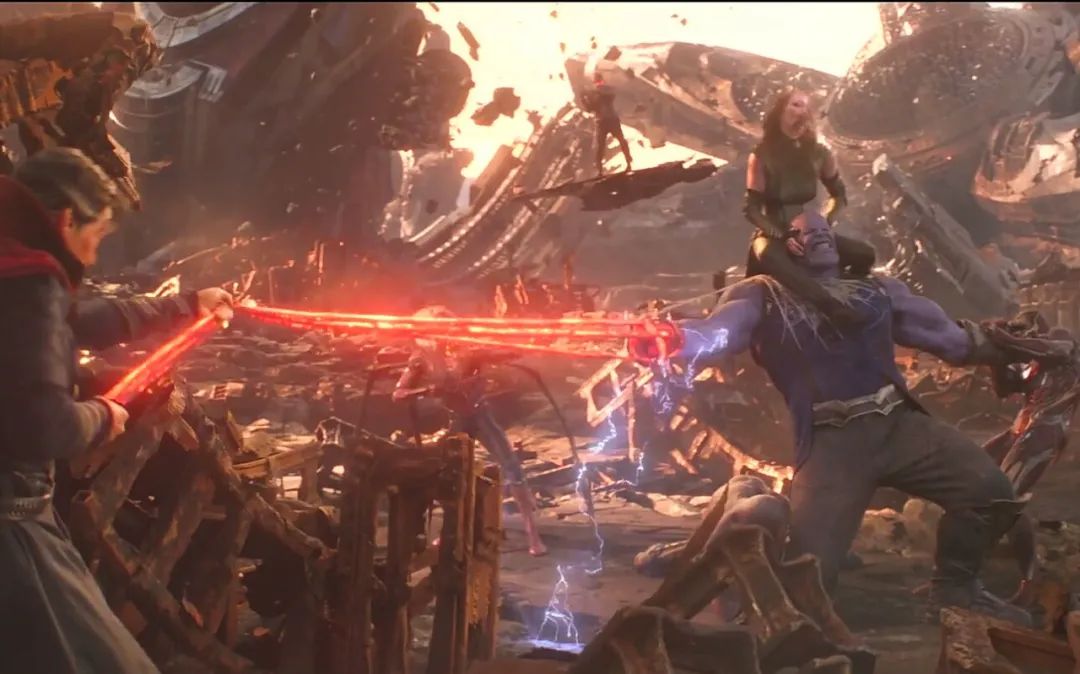其中一个重要的细节是,即使在“爆米花视觉大片”这个层面上,漫威电影如今都变得越来越敷衍了事,缺乏诚意。早在《钢铁侠》时,漫威电影赖以生存的卖点就是优秀的视觉效果表现,钢铁侠每一代战服都被网友津津乐道来盘点细节,唐尼穿上不同战服的场景是每一部电影的看点,此后《复仇者联盟》的纽约大战,《奇异博士》里的城市扭曲空间,《美国队长2》里的动作戏、《复联3无限战争》里的泰坦星斗法,都是颇有视觉设计艺术的特效打造,是能更令观众入戏的电影视觉魔术。